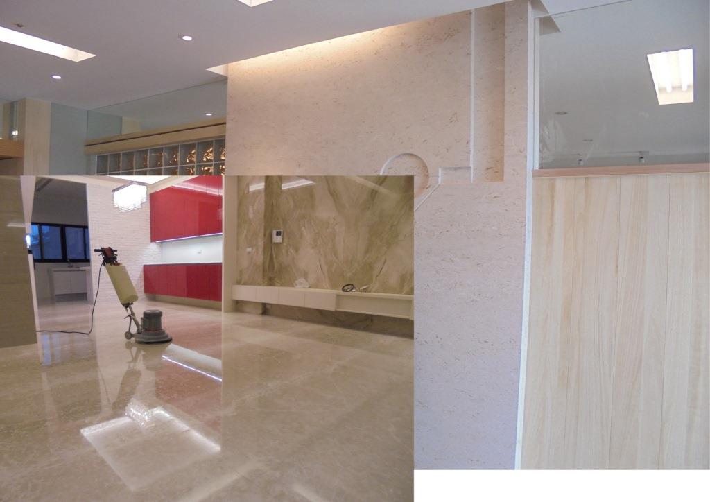一、至少兩年要做一次淺油性防護、防污、防滲透工作。 二、平常保養:拖地時需使用少許漂白水和中性清潔劑, 不能有起泡劑的成分,拖地要使用有吸水性的布料且不能太濕。 三、電視牆部分:用清水加少許彩劑或漂白水